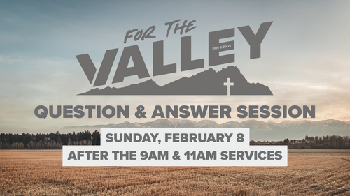 Sunday's message was all about our For The Valley Vision Series. Over the next four weeks, we’ll continue to share the elements of the vision and how they tie into our core pillars and what we believe God wants to do through us as a church to impact our valley.